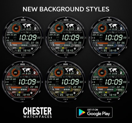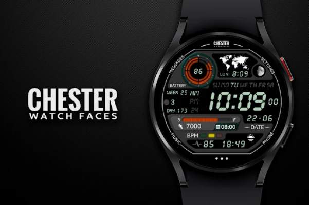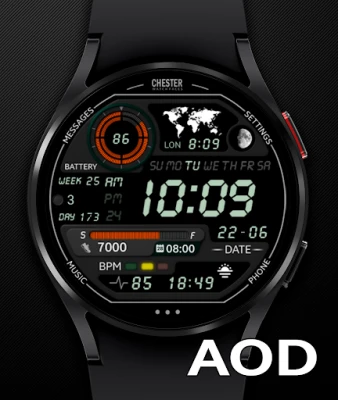 Chester LCD watch face предлага класически циферблат за Wear OS часовници. Насладете се на време, дата, двойна часова зона, фаза на луната и персонализирани зони. Сменяйте цветове, ползвайте преки бутони и AOD. Поддържа 12/24 часов формат и е многоезичен.