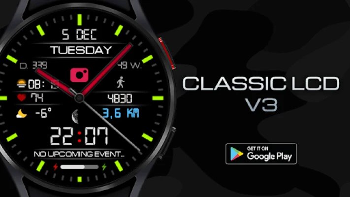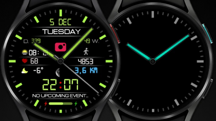 Представяме Ви изключителен циферблат за Вашия Wear OS часовник, създаден да внесе стил и функционалност на китката Ви. Разработен с висока прецизност, този циферблат е идеалният аксесоар за всички Wear OS устройства с API ниво 33+, включително популярни модели като Samsung Galaxy Watch 4, 5, 6, 7, 8 и Google Pixel Watch. Насладете се на кристално чиста картина с висока резолюция, която преобразява начина, по който възприемате времето, съчетавайки елегантност и практичност в едно динамично преживяване.