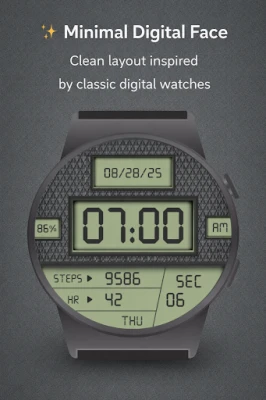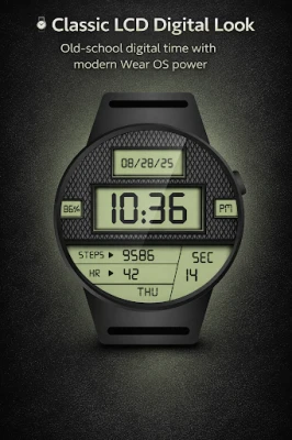 Независимо дали тренирате, пътувате до работа, работите в офиса или просто се наслаждавате на свободното си време, Digitec LCD Display Watch Face е идеалният спътник. Той добавя нотка класически стил към всяко облекло и повод, подчертавайки вашата любов към изчистения и функционален дизайн. Този циферблат е проектиран да бъде изключително универсален, съчетавайки естетика и практичност. Digitec LCD Display Watch Face е съвместим с всички устройства с Wear OS с API 33+ като Google Pixel Watch и Samsung Galaxy Watch, гарантирайки безпроблемна интеграция. Моля, обърнете внимание, че циферблатът е предназначен изключително за кръгли дисплеи и не е подходящ за правоъгълни или некръгли модели смарт часовници. Върнете класическия дигитален стил с модерна нотка на китката си.