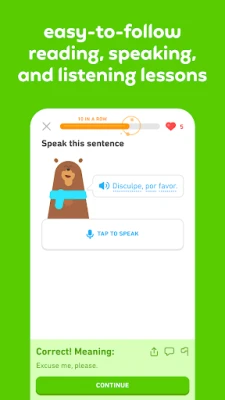 Duolingo е забавно и безплатно приложение за изучаване на над 40 езика. Учете чрез кратки уроци, практикувайки говорене, четене, слушане и писане. Изградете своите речникови и граматически умения ефективно.