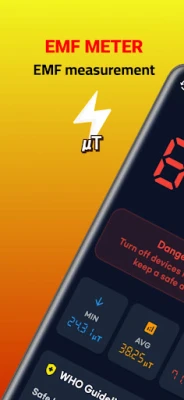 Загрижени ли сте за невидимите електромагнитни полета (ЕМП), които ни заобикалят ежедневно? Представяме ви иновативен инструмент, създаден да ви даде пълен контрол върху заобикалящата ви среда. С този EMF измервател можете да осъществявате прецизно наблюдение в реално време, визуализирайки данните чрез интуитивни графики и лесни за разбиране числови стойности. Приложението интерпретира тези данни спрямо актуалните насоки на Световната здравна организация (СЗО), предоставяйки незабавна оценка на риска – от безопасно до потенциално опасно ниво, за вашето спокойствие и сигурност.