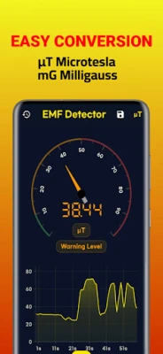 EMF измервател превръща смартфона ви в интелигентен инструмент за следене на електромагнитни полета (EMF). Лесно наблюдавайте интензитета на вълните около вас и управлявайте потенциалните рискови фактори във вашата среда.