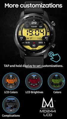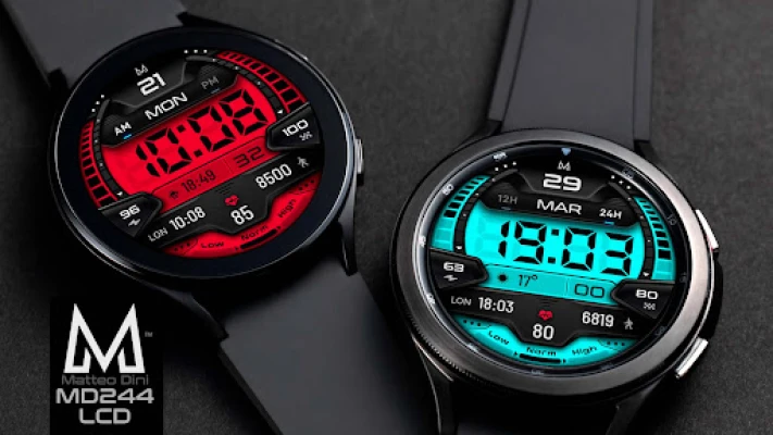 "MD244 LCD" е елегантен дигитален циферблат за часовници с Wear OS, разработен от Matteo Dini MD. Той преобразява вашия смарт часовник с модерен дизайн, осигуряващ ясен изглед на времето и основните данни.