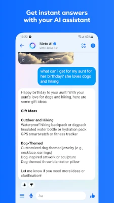 Свържете се смислено с хора от вашите общности – било то съседи, съученици или групи по интереси. Влезте във вътрешния кръг на любимите си създатели, като се присъедините към техните канали за излъчване, за да получавате автентично и непринудено съдържание. А за да имате винаги помощ под ръка, Meta AI е вашият интелигентен асистент, който може да отговаря на всякакви въпроси, да дава съвети, да помага с домашни и дори да разгърне вашето въображение, създавайки, редактирайки и анимирайки изображения. Използвайте Meta AI като свой творчески партньор за всичко, което си представите, имайки предвид, че Meta AI е наличен само на избрани езици и в определени държави, с планове за скорошно разширяване.