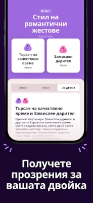 За двойки, които планират важна крачка или вече са в брачен съюз, Nemlys предлага уникални инструменти, които подпомагат преходите и укрепват връзката. От игри с карти за задълбочаване на разбирането до викторини за откриване на взаимна съвместимост, приложението действа като личен консултант за връзки, насърчавайки емоционалната интимност и проследяването на важни моменти. Nemlys ви помага да изследвате ценности, цели и мечти, откривайки как те се преплитат с тези на вашия партньор. Превърнете всяка вечер в романтично приключение и наблюдавайте как вашата любов расте и се задълбочава с Nemlys – вашият верен спътник към по-щастливо и пълноценно заедно.