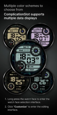 Отвъд визията, този циферблат предлага пълен набор от функционалности за вашето ежедневие. Винаги ще бъдете информирани за текущия час, дата и ден от седмицата, както и дали е AM или PM. За да персонализирате напълно изживяването, разполагате с над 10 персонализирани цветови схеми, които ви позволяват да адаптирате циферблата към вашето настроение или облекло. А с шестте слота за усложнения можете да изберете коя информация е най-важна за вас, като я държите винаги на една ръка разстояние, точно както ви е необходимо.