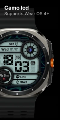 Персонализирайте своя часовник с Camo LCD: Watch Face за Wear OS 4+. Този класически циферблат разполага с LCD цифри, камуфлажен фон и над 10 цветови опции. Показва час, дата, пулс, стъпки и батерия. Включва 6 слота за усложнения и AOD дисплей.