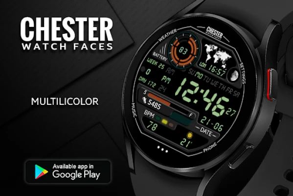 Chester LCD watch face предлага класически циферблат за Wear OS часовници. Насладете се на време, дата, двойна часова зона, фаза на луната и персонализирани зони. Сменяйте цветове, ползвайте преки бутони и AOD. Поддържа 12/24 часов формат и е многоезичен.