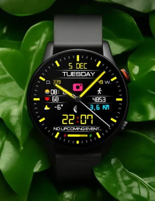 Персонализацията е в сърцето на този циферблат, предлагайки Ви пълен контрол върху визията на Вашия часовник. Изберете между 12- или 24-часов цифров формат за времето, което най-добре отговаря на Вашите предпочитания. Имате свободата да променяте цвета на стрелките, за да пасне идеално на Вашия тоалет или настроение, както и да избирате измежду разнообразни стилове и фонове, превръщайки дисплея си в уникално произведение на изкуството. Добавете персонализирани усложнения за бърз преглед на ключова информация, а за допълнително удобство, циферблатът поддържа както пълен, така и минимален режим "Винаги включен дисплей" (AOD).