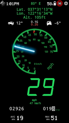 Отвъд елементарното показване на скоростта, това приложение предоставя редица усъвършенствани функции, които обогатяват вашето преживяване. Визуализирайте скоростта си директно върху предното стъкло с иновативния HUD режим, за да поддържате поглед върху пътя. Проследявайте посоката си с прецизен компас и наблюдавайте динамиката на автомобила си чрез G-Force измерителя и уиджета за наклон и завъртане (roll & pitch). Освен това, винаги ще знаете точните си координати и надморска височина благодарение на вградения дисплей.